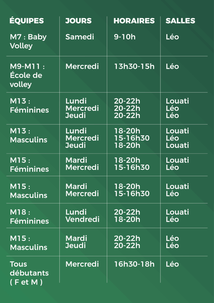 Ecole de volley M9-M11 (2017-2015) :